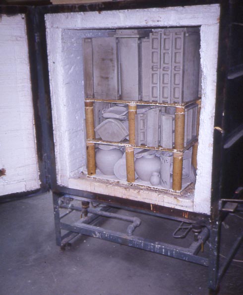Das sorgfältig getrocknete Material durchläuft den ersten Brand. Anschließend wird die Glasur aufgetragen und in einem zweiten, dem so genannten Glattbrand, fertig gestellt.