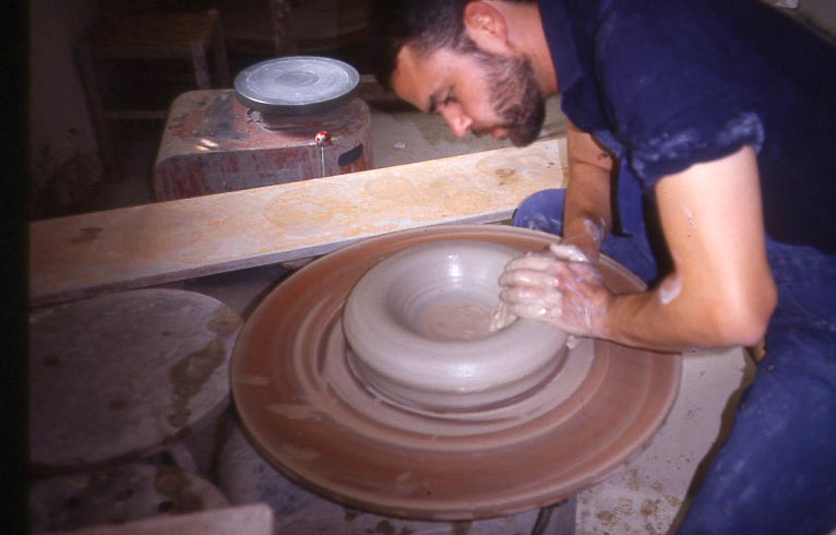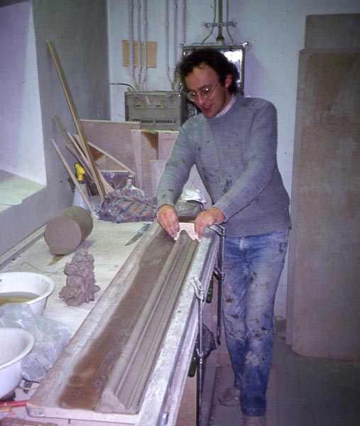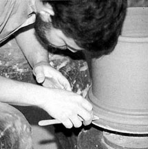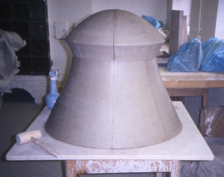 Gesimse, Kuppeln und Ofenaufsätze werden auf der Töpferscheibe frei gedreht.